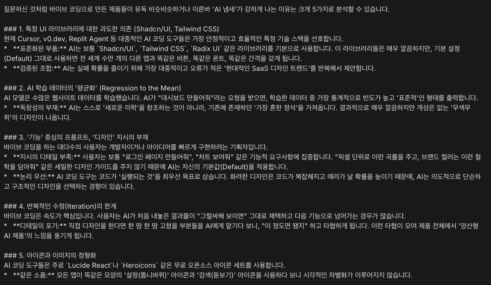 바이브코딩은 속도를 주지만, 서비스 맞춤의 개성은 표현할 수 없다는 것.